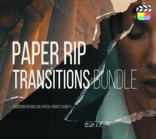 这是一套为Final Cut Pro精心制作的手工纸张撕裂转场效果合集,包含独特的撕纸视觉动画与配套音效,可为影片增添自然、有质感的过渡效果。通过拖放方式即可快速应用,适合照片与视频素材,并针对竖屏视频进行了优化。
