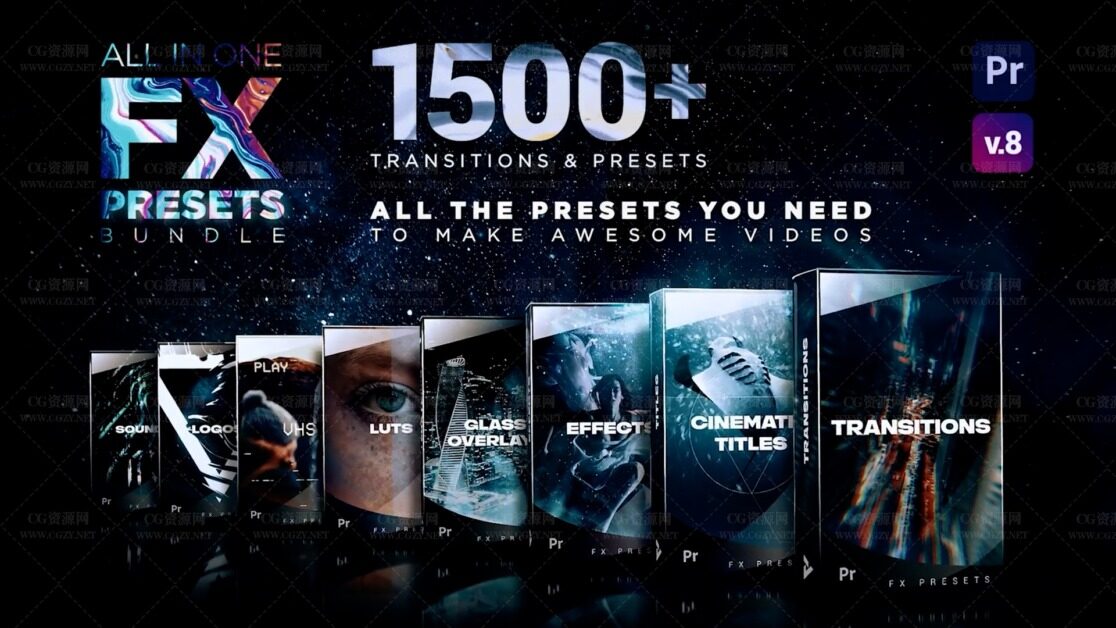 PR模板|1500+文字标题视频转场特效调色PR预设-FX Presets Pack V8