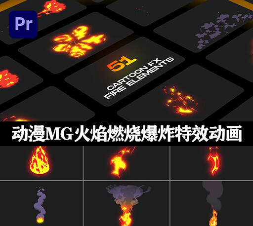 PR脚本|51种动漫MG火焰燃烧爆炸特效动画预设 Fire Cartoon VFX