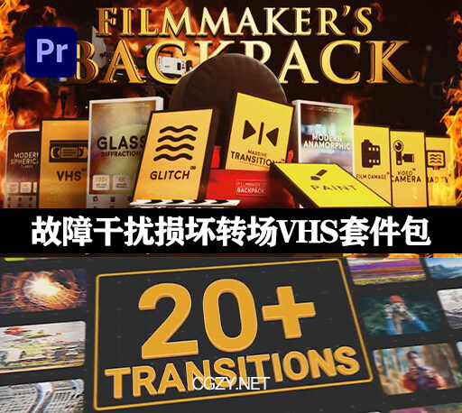 PR模板|复古录像带故障干扰损坏效果转场VHS特效套件包-VHS Kit for Premiere Pro