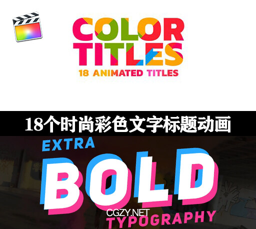 FCPX插件|18个时尚彩色文字标题动画模板-Color Titles