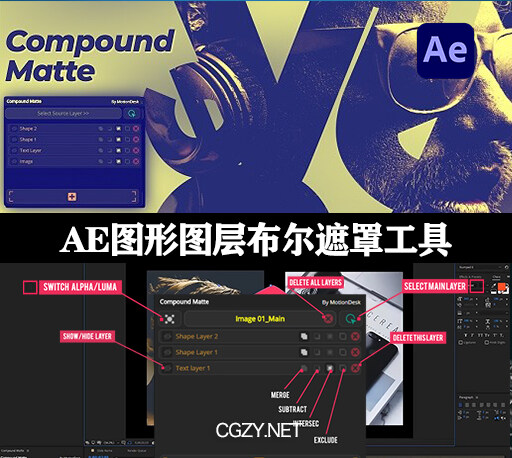 AE脚本|图形图层布尔遮罩工具-Compound Matte 2.0.0 + 使用教程