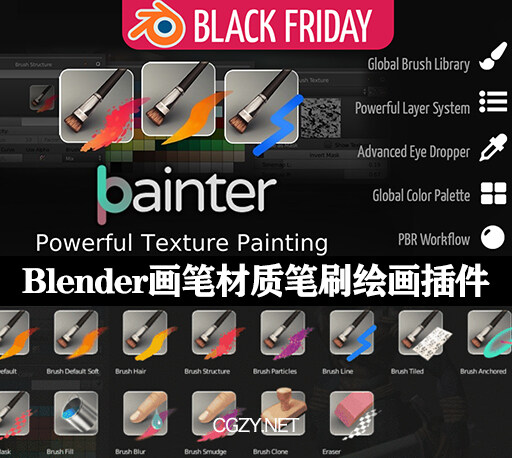 Blender插件|Bpainter v2.0.19-高级画笔材质笔刷绘画插件