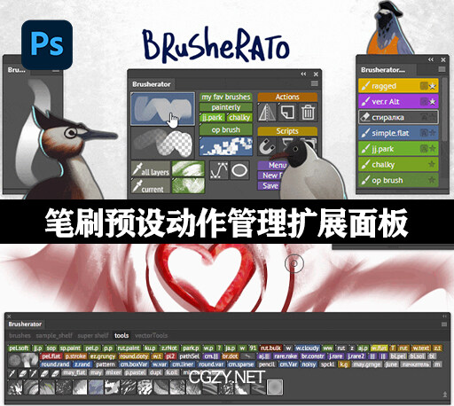 PS插件|Brusherator 1.8 笔刷预设动作管理扩展面板