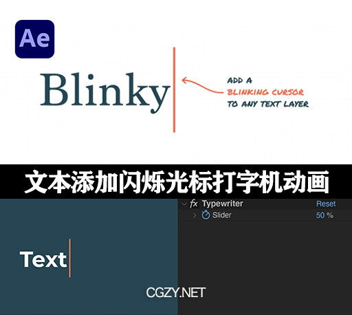 AE脚本|Blinky 2.0 一键给文字添加闪烁光标打字机效果工具+使用方法