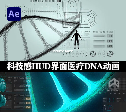 AE模板|科技感HUD界面医疗DNA动画 HUD Medical Interface Heart