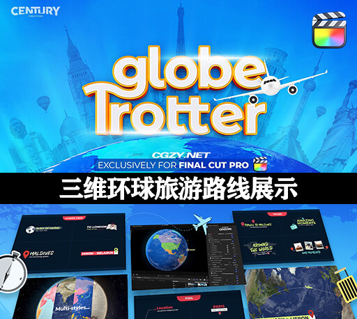 FCPX插件|旅行地图路线坐标旅拍Vlog视频元素包 Globe Trotter 2.0
