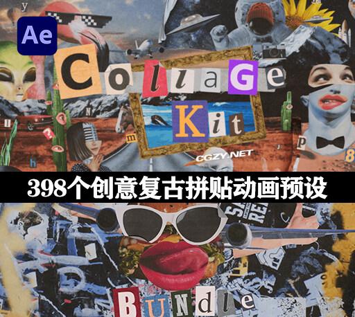 AE脚本|482种嘴唇眼睛手势动物汽车复古定格贴纸拼贴动画预设 Collage Kit Constructor V3