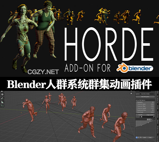 Blender自定义人群系统群集动画插件 Horde Add-On: Crowd System Tools V1
