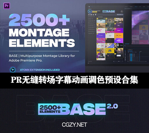 AE脚本|8套AtomX脚本视频无缝转场文字标题排版字幕动画调色预设包
