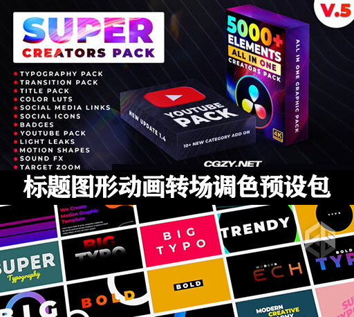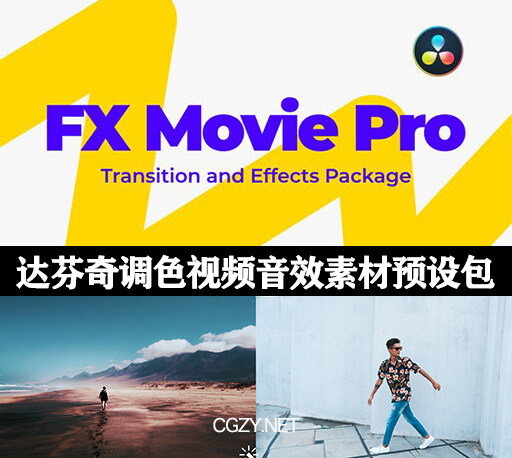 达芬奇LUT调色视频转场叠加特效音效素材预设包-DaVinci Resolve Transition and Effects Package