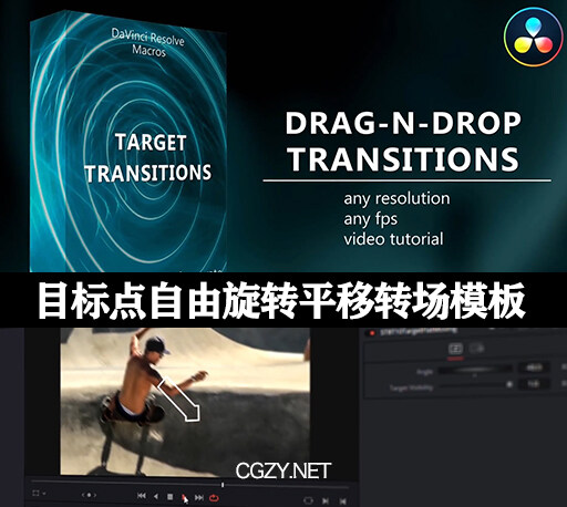 DaVinci Resolve目标点自由旋转缩放平移转场过渡预设模板下载-Target Transitions