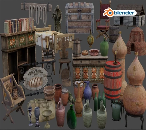 这套《巫师3:狂猎》全物件3D模型资源包(不含角色)汇集了游戏中场景所使用的大量家具、建筑、容器、生活物件与环境道具。适合用于Blender场景搭建、游戏美术学习、3D建模参考、关卡设计示例等使用场景。