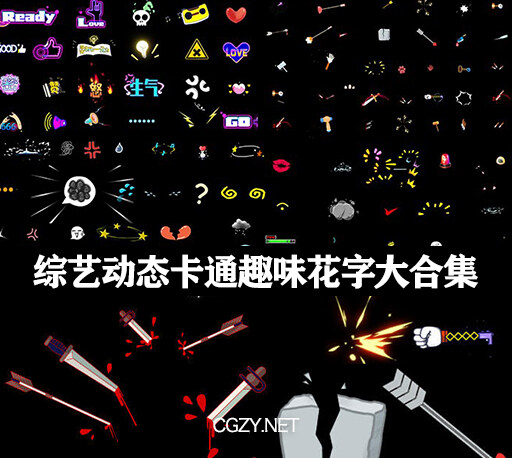 视频素材|600款综艺动态卡通趣味花字动画素材大合集 带通道+音效